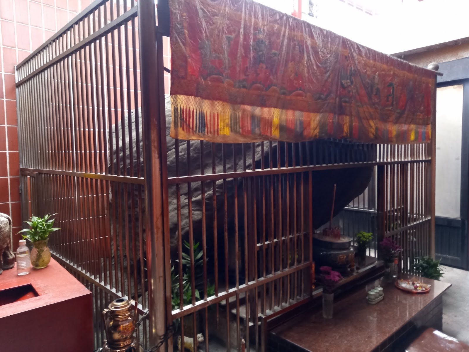| 擋在路中央風動石/聖宮石廟--闢建在地下一層 依據1954年報導資料--這顆巨石有二萬公斤 |