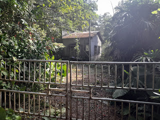 串空湖山下來是陡下坡路,緩稜段有個小山丘很特別,8:26抵達土地公廟等三間廟,把廟建在這裡還真是好樣,可看到對面森活建築和雞冠山景色。