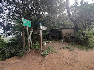 枹仔坑山就是140高地,10:38走入木棧道後轉為陡坡路,10:43經三岔路休息點後轉左而上,這段路改為寬敞水泥路面。