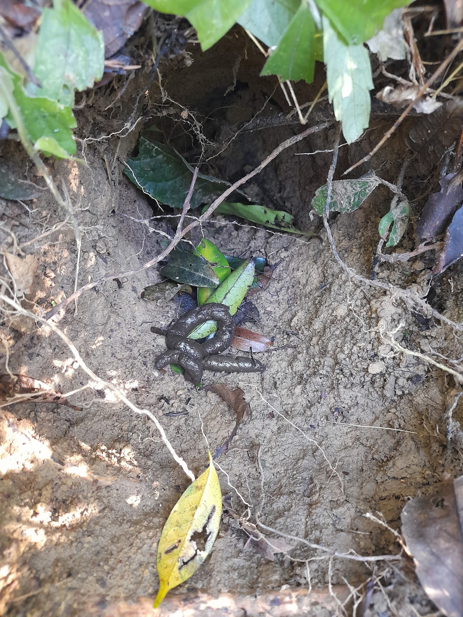 10:06下抵寬廣十字鞍部,右邊可下建安左邊可出平廣路二段137巷,這條路線過往很熱絡,往上過寬稜發現穿山甲洞穴有排遺。