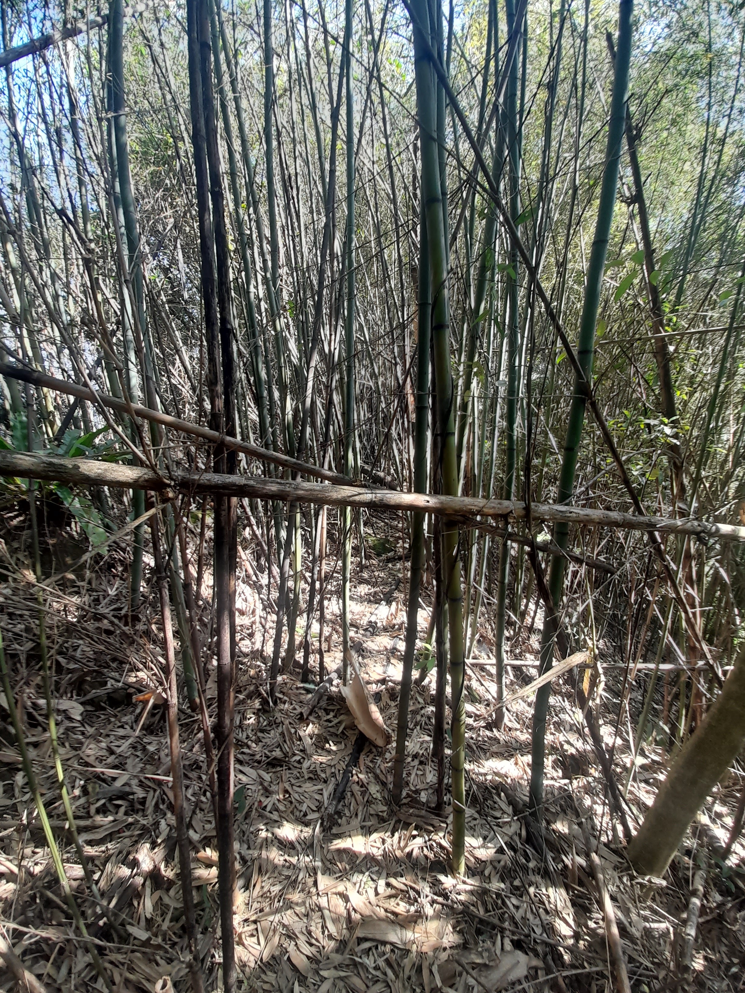 下坡進入竹林路段,天上有老鷹聲聲叫,另一處檳榔林有枯萎現象,山路起伏中進入竹林路段。