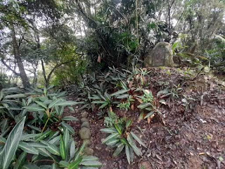 對向山頭也是竹叢地可展望101大樓北盆風景面,今天視野濛濛不清晰,後岔轉右沿墓地而上巡徑9:40上劍頭山。