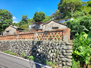 福神廟後進入灣潭頂埔聚落,一路上觀察住家建築形貌後進入海會寺,小型公車把這當終點站,寺內有以前駐軍房子遺跡。