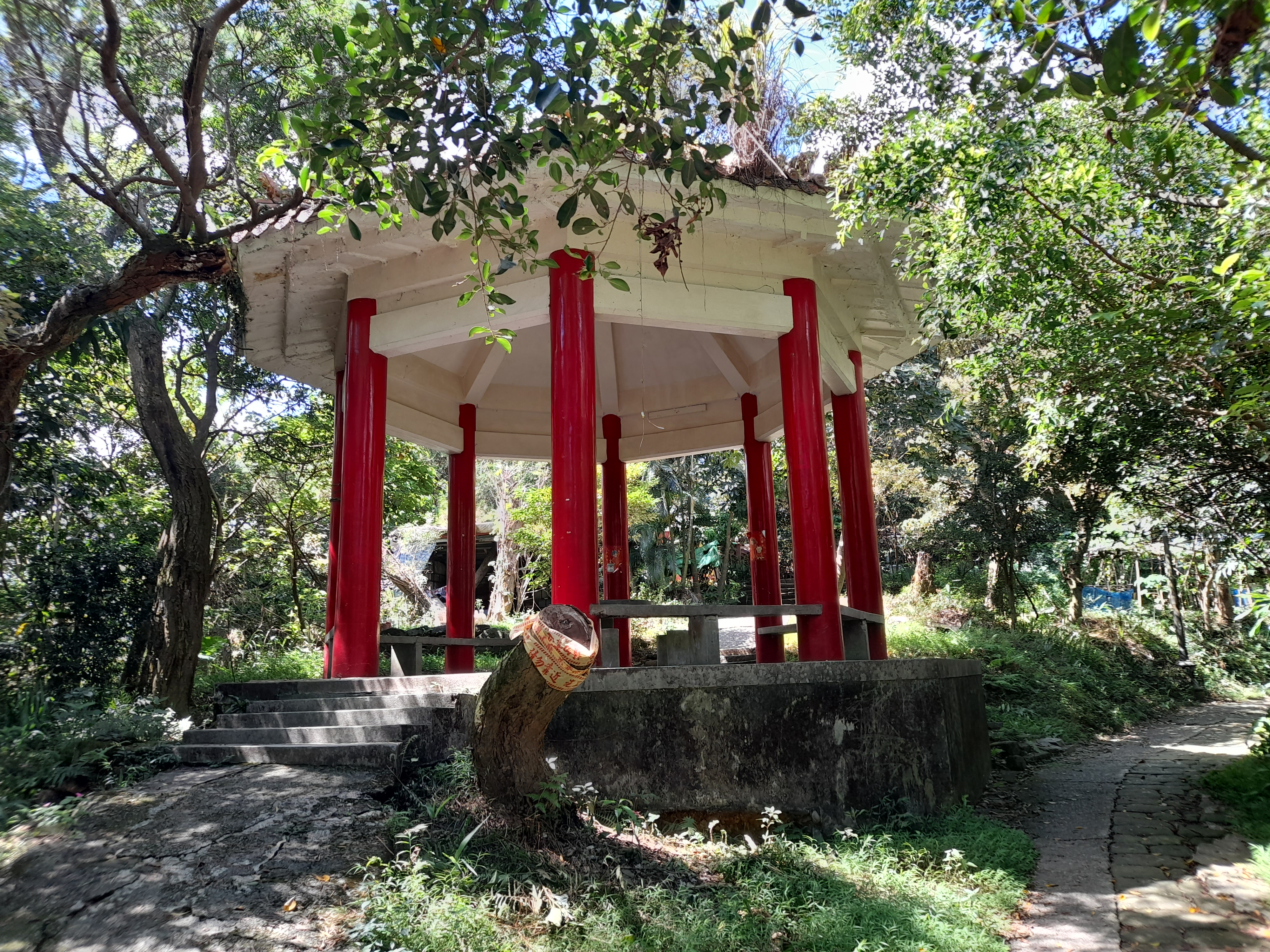 一路看~石燈籠、廊道圓柱、兩側石廂房各有小花園、右邊有涼亭,此處古早時代稱為是石壁湖山或柯子崙山。