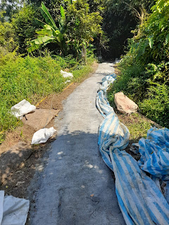 這段路坡地也有不少姑婆芋,路尾電塔前有條岔路可連結永豐路,這條山腰路蠻窄、滑感而不穩需要留意。