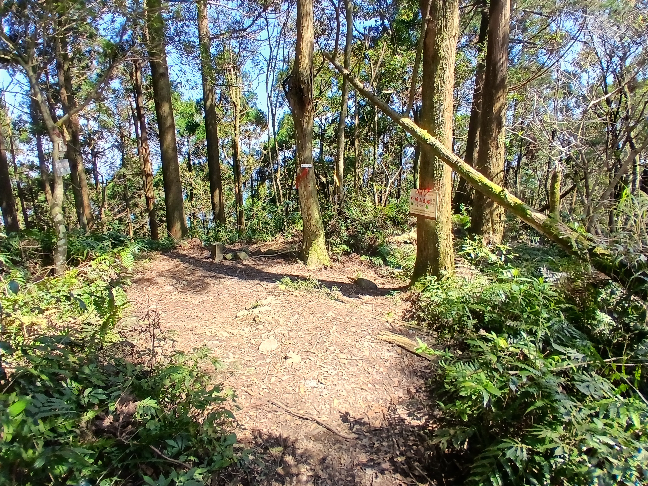 不久陡坡路中又遇上了橫倒大樹,心想就從旁繞過過直接朝西上,這樣就不用回走蜿蜒山徑了,8分鐘上來肯氏南洋杉區段寬平地。