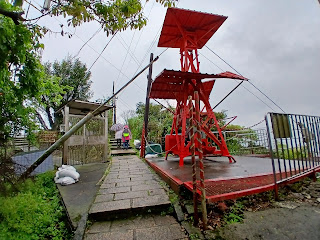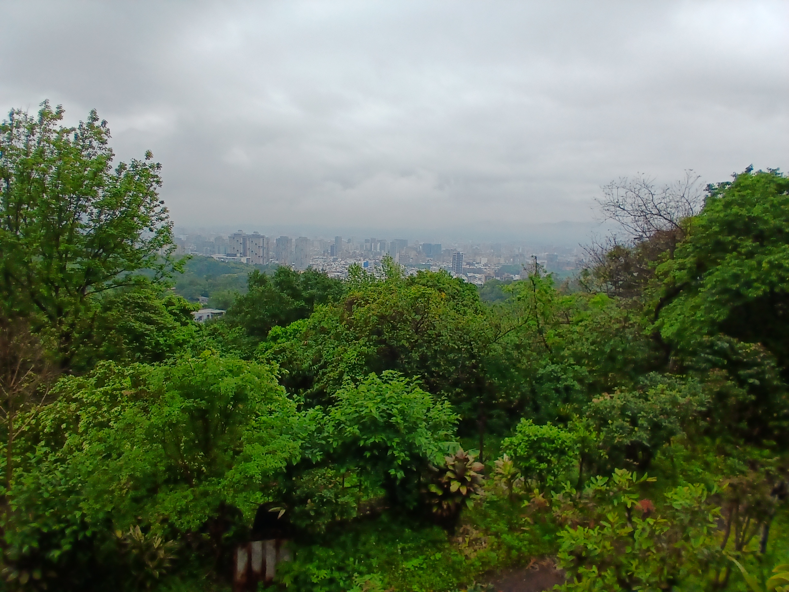 一段陡坡階梯上來142m虎山峰,觀景台上有座日咎儀,環景~象山、101和北盆城貌視野,察覺到霧氣慢慢形成有種面紗般情景。